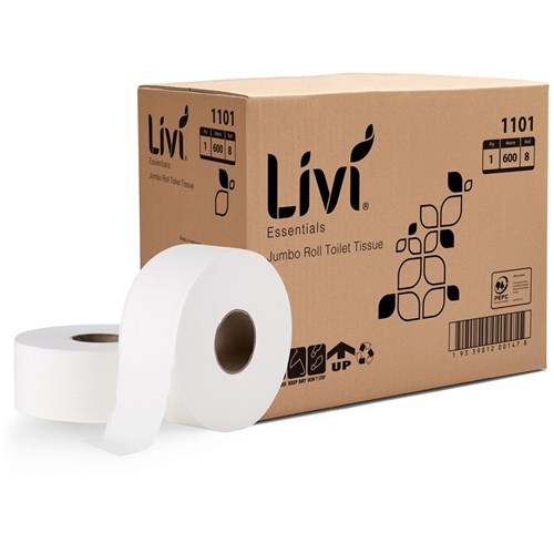 Livi Essentials Toilet Paper Jumbo Roll 1 Ply 600m Box Of 8