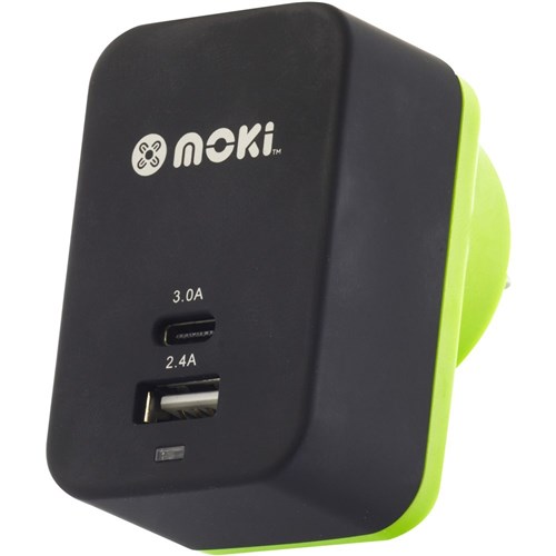 Moki Type-C + USB 3.0 Rapid Charge Wall Charger Black