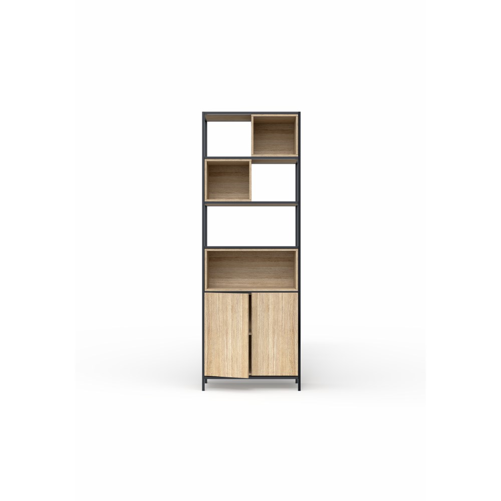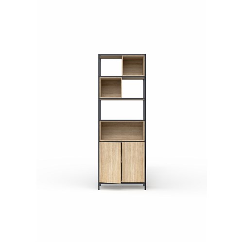 OLG Rhodes Modular Shelving 1 Bay 840W x 455D x 2400mmH New Oak Ravine Black Frame