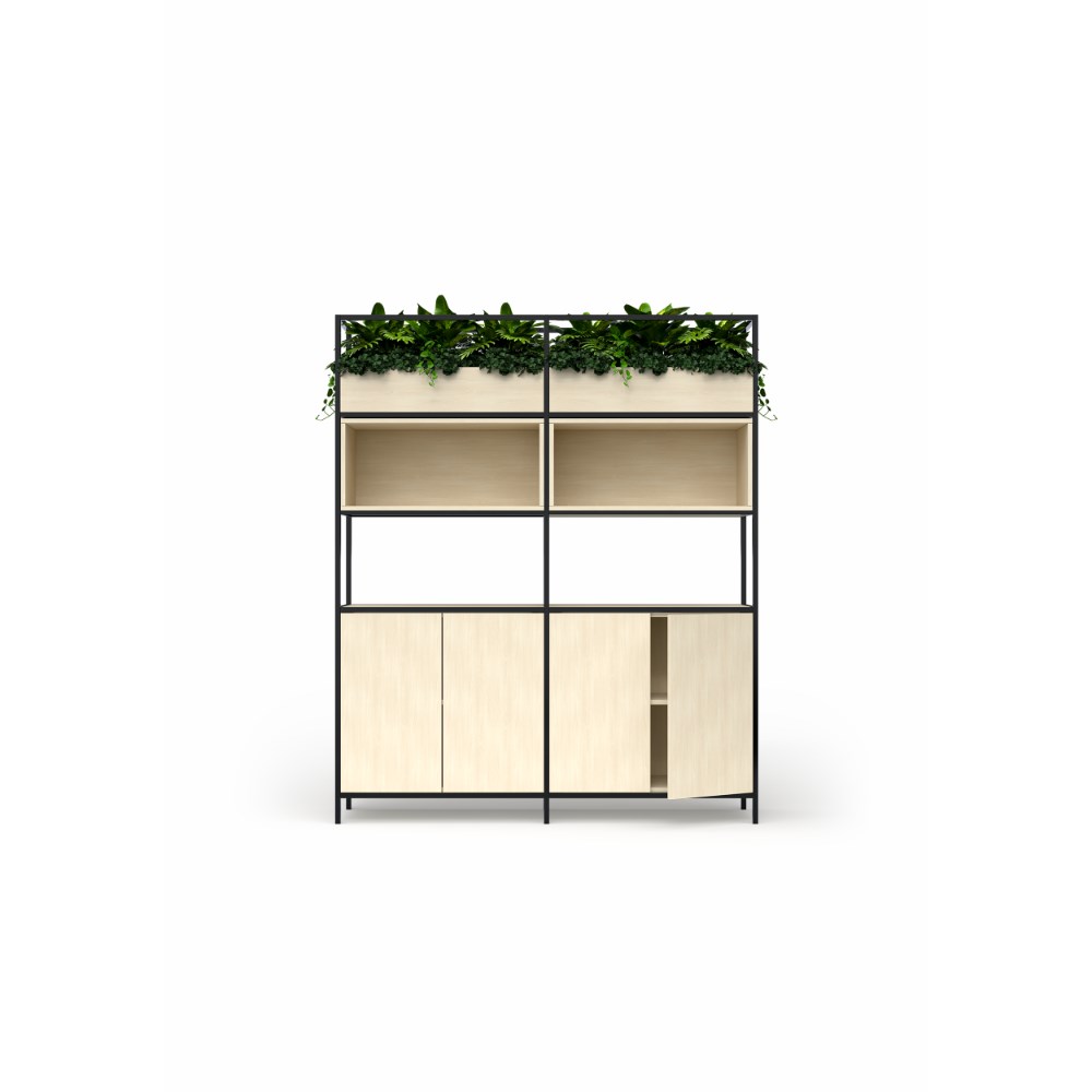 • OLG Rhodes Modular Shelving 2 Bay 1680W x 455D x 2000mmH Nordic Maple Black Frame