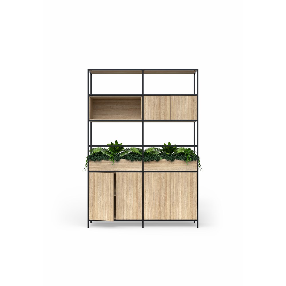 • Includes: End frame 2400 (2 pack), middle frame (1 x 1 pack), rails (10 pack x 2.4), shelves (5 pack x 2.4), full cubby, full cupboard x 2, small cupboard and planter box. Plants not included.