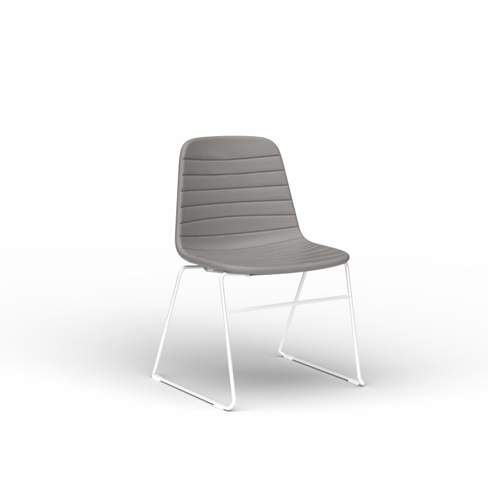 OLG Sofia Visitor Chair White Sled Base Light Grey PU Leather Seat