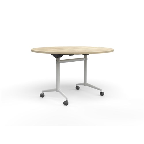 OLG Uni Round Flip Table 1200D x 720mmH New Oak Top White Frame