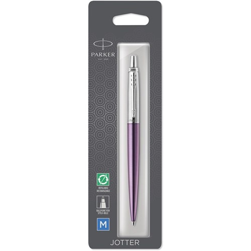 Parker Jotter Ballpoint Pen Victoria Violet Chrome Trim Blue Refill
