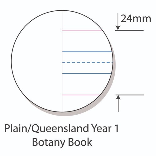 • Top 1/2 plain, bottom 1/2 Qld Year 1 ruled. Red margin.