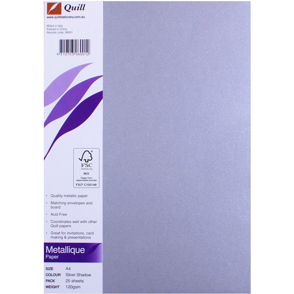 Quill Metallique Paper A4 120gsm Silver Shadow Pack of 25