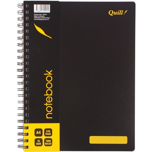 Quill Notebook A4 8mm Ruled 70gsm 240 Pages Black