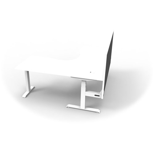 • Dual Motor 3 stage motorised legs. Corner Workstation with screen. 140kg weight loading capacity.