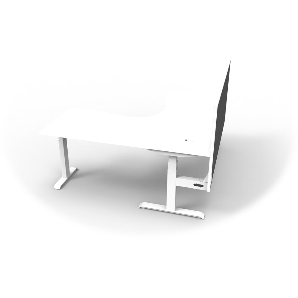 • Dual Motor 3 stage motorised legs. Corner Workstation with screen. 140kg weight loading capacity.