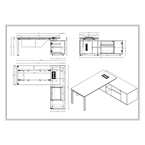 • Side cabinet provides ample storage with 2 lockable drawers, a cupboard, and open shelf compartments.