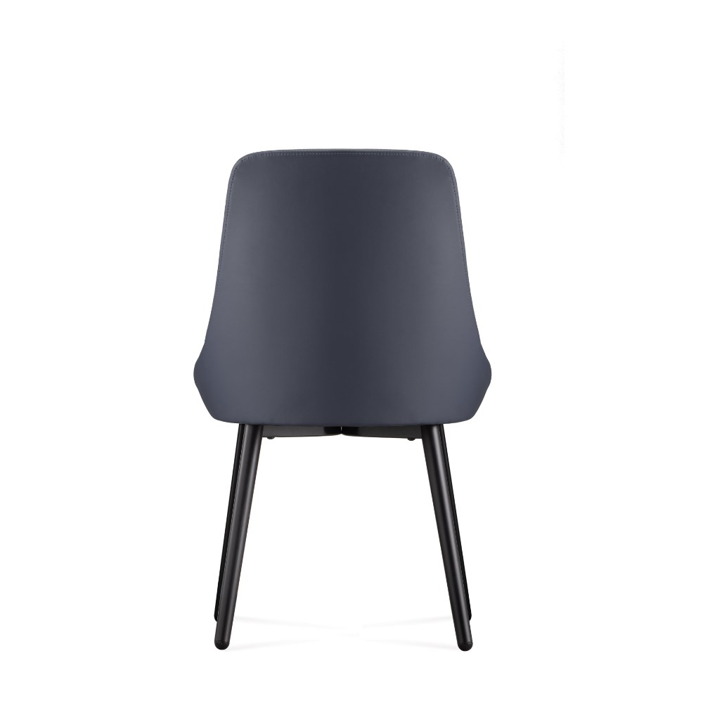 • Robust steel 4 leg frame finished in black powder coat French Navy PU leather seat.