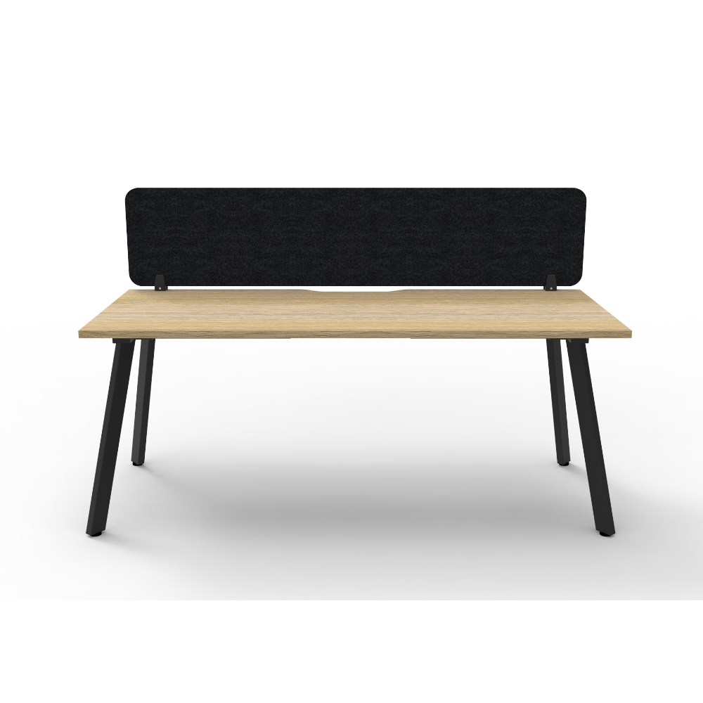 • Natural Oak worksurface with rigid edging and 410mmW x 50mmD scallop cable access. Black Satin powder coat frame. Eco screen.