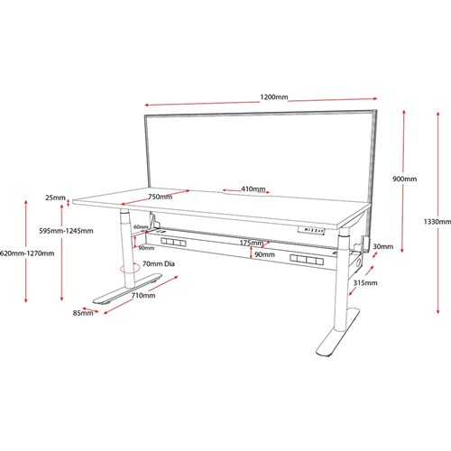 • 620-1270mm height range for desk.