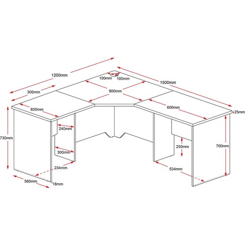 Rapidline Rapid Worker Corner Workstation 1200/1500W x 600D x 730mmH Oak And Ironstone