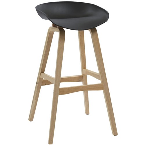 Rapidline Virgo Bar Stool Oak Coloured Timber Frame With Polypropylene Black Shell Seat