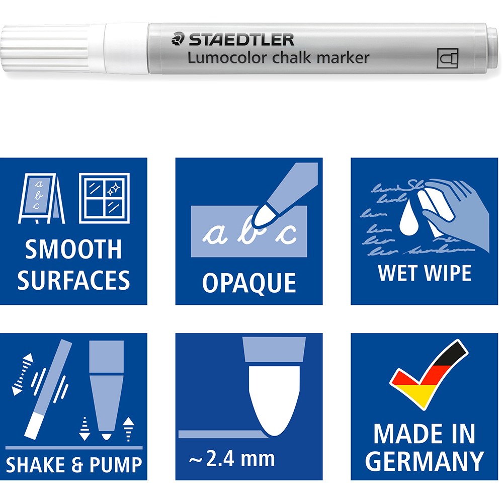 Staedtler 344 Lumocolor Chalk Marker Medium Bullet 2.4mm White Box of 10