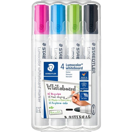 Staedtler 351 Lumocolor Whiteboard Marker Bullet 2mm Assorted Colours Wallet Of 4