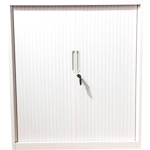 • Steelco Tambour Door Cupboard Includes 3 Shelves 900W x 463D x 1200mmH White Satin
