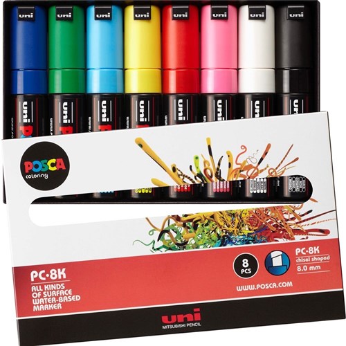 Uni Posca PC-8K Paint Marker Broad 8mm Chisel Tip Assorted Colours Wallet Of 8