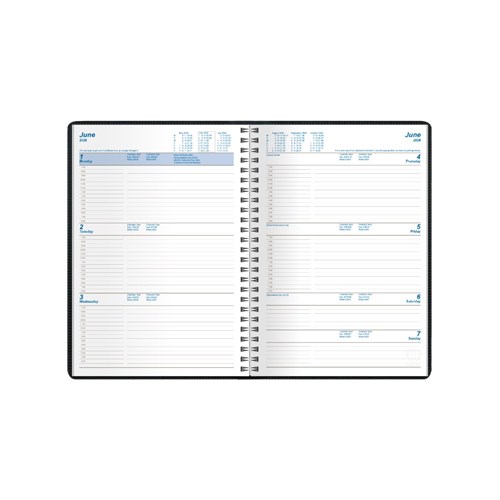 • Featuring a padded, phthalate free, PVC cover, pockets for storing business cards and wire-o binding to allow the diary to lie completely flat when open.