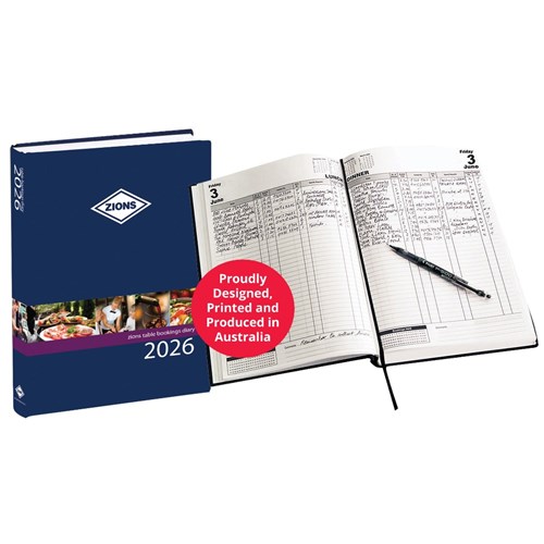 • Zions Table Bookings Diary is proudly designed, printed and produced in Australia from sustainable sources.
